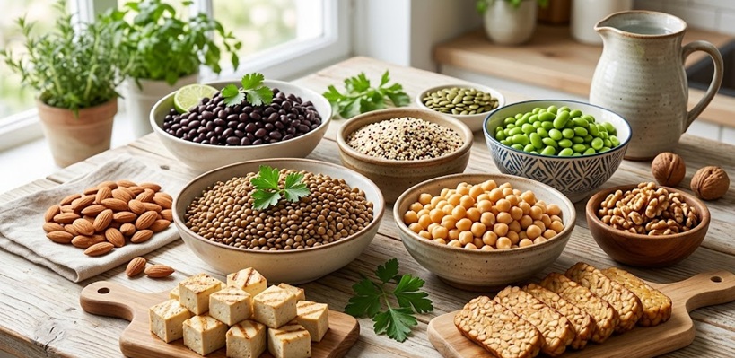 O dietă bazată pe plante poate oferi toate proteinele necesare organismului, fără a implica produse de origine animală. Leguminoasele, soia și derivatele sale, quinoa, pseudocerealele, nucile, semințele și cerealele integrale formează un arsenal nutritiv bogat și accesibil.